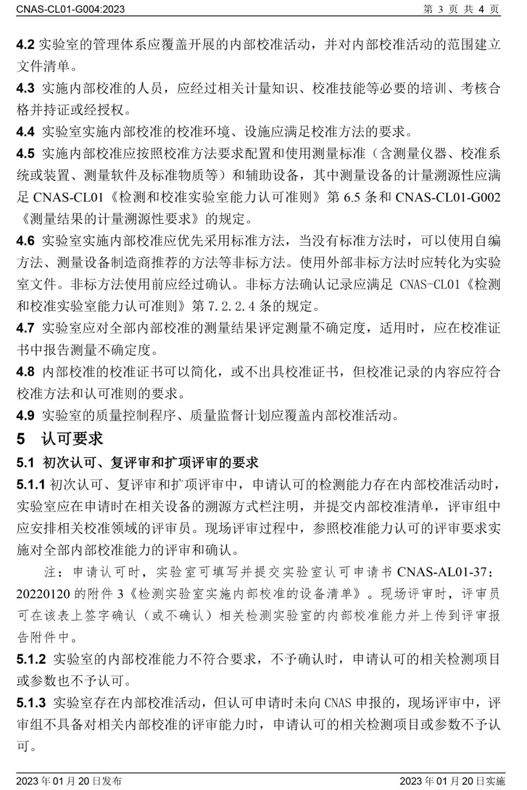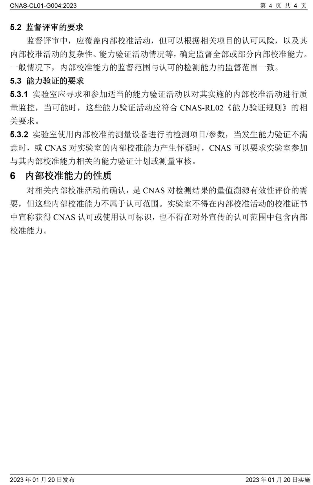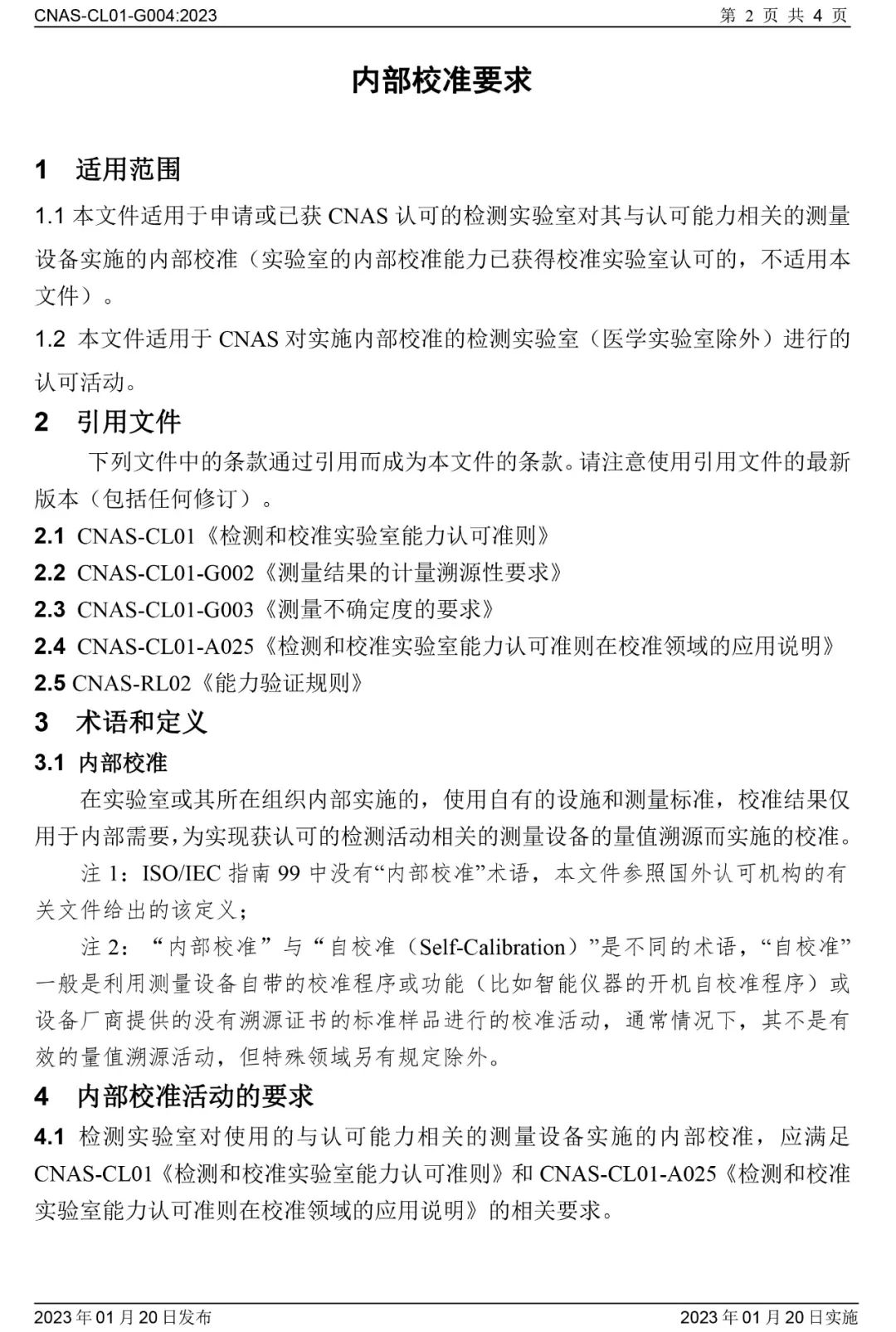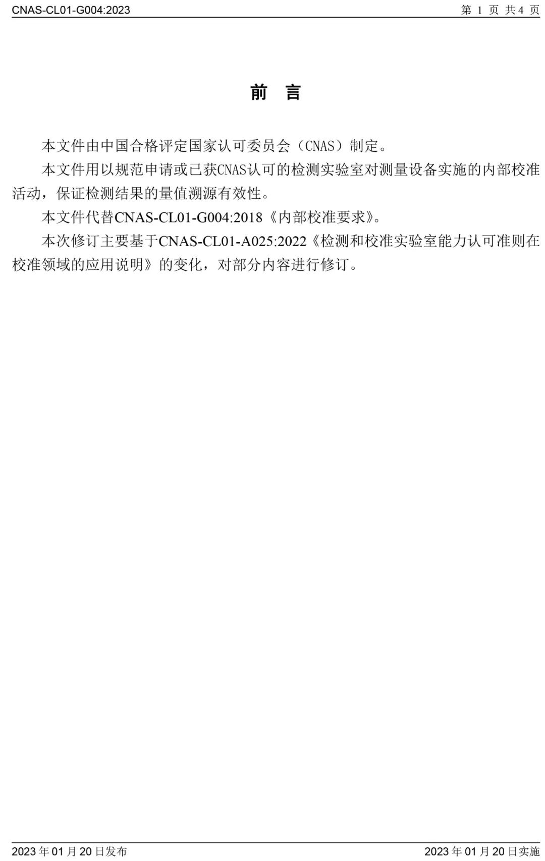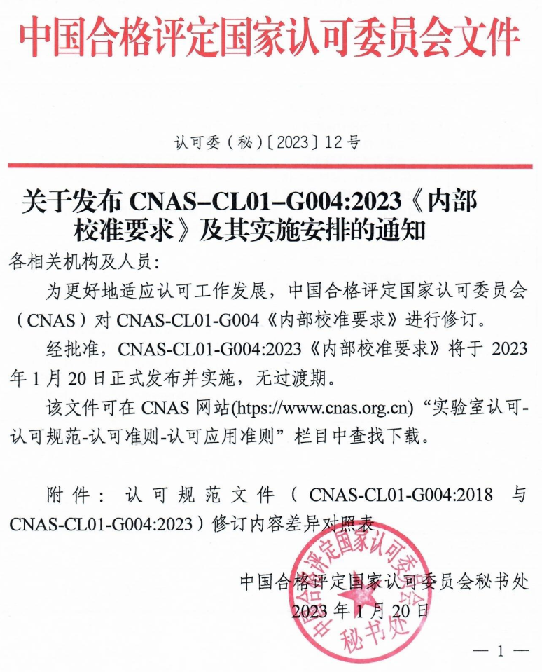 中國(guó)合格評(píng)定國(guó)家認(rèn)可委員會(huì)(CNAS)近日發(fā)出通知,CNAS-CL01-G004:2023《內(nèi)部校準(zhǔn)要求》已于2023年1月20日正式發(fā)布并實(shí)施,無過渡期,詳情如下: