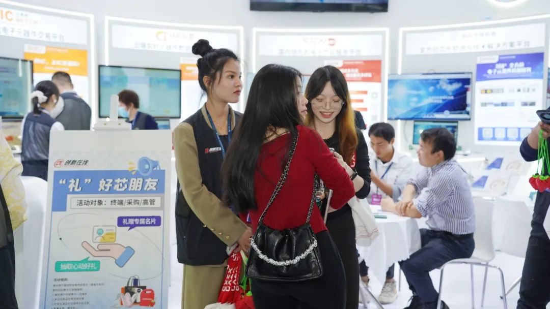 展會期間,創新在線攜全新服務矩陣精彩亮相,再次彰顯其在一站式電子產業服務解決方案領域的卓越實力。展位采用簡約科技風格設計,巧妙融合各板塊業務交互屏,直觀呈現智能交易平臺、高精度檢測技術、跨境供應鏈解決方案等創新成果。面對絡繹不絕的訪客,團隊成員始終以專業素養應對觀眾熱情:從產品技術解析到應用場景拓展,從市場趨勢研判到痛點解決方案探討,為每位訪客提供精準解答。