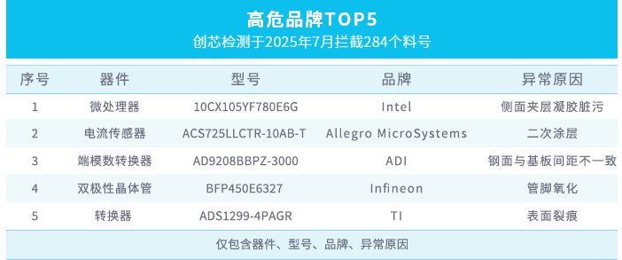 為了使更多客戶了解異常物料信息,創芯檢測對外發布元器件異常品質分析報告,希望能幫助您預警風險,確保安心購物,避免購買不合格器件。